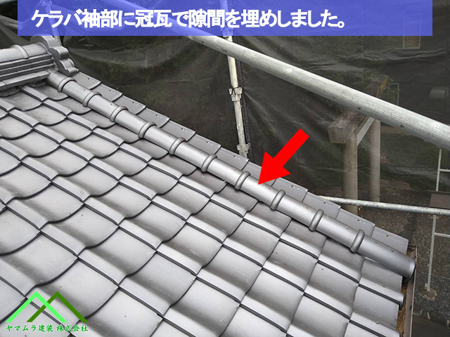 ここには、専用のケラバ袖瓦(ケラバ瓦)を使用し、建物をしっかりと守る役割を持たせます。