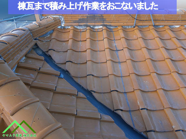 まずは、平瓦を大棟際までしっかりと修復し、土台を固めます。