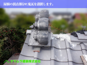 『名古屋市中川区【鬼瓦屋根設置】屋根を守る鬼瓦の再利用設置工事!地震でも落ちない長尺ビスと針金を使った職人の結束技術』
